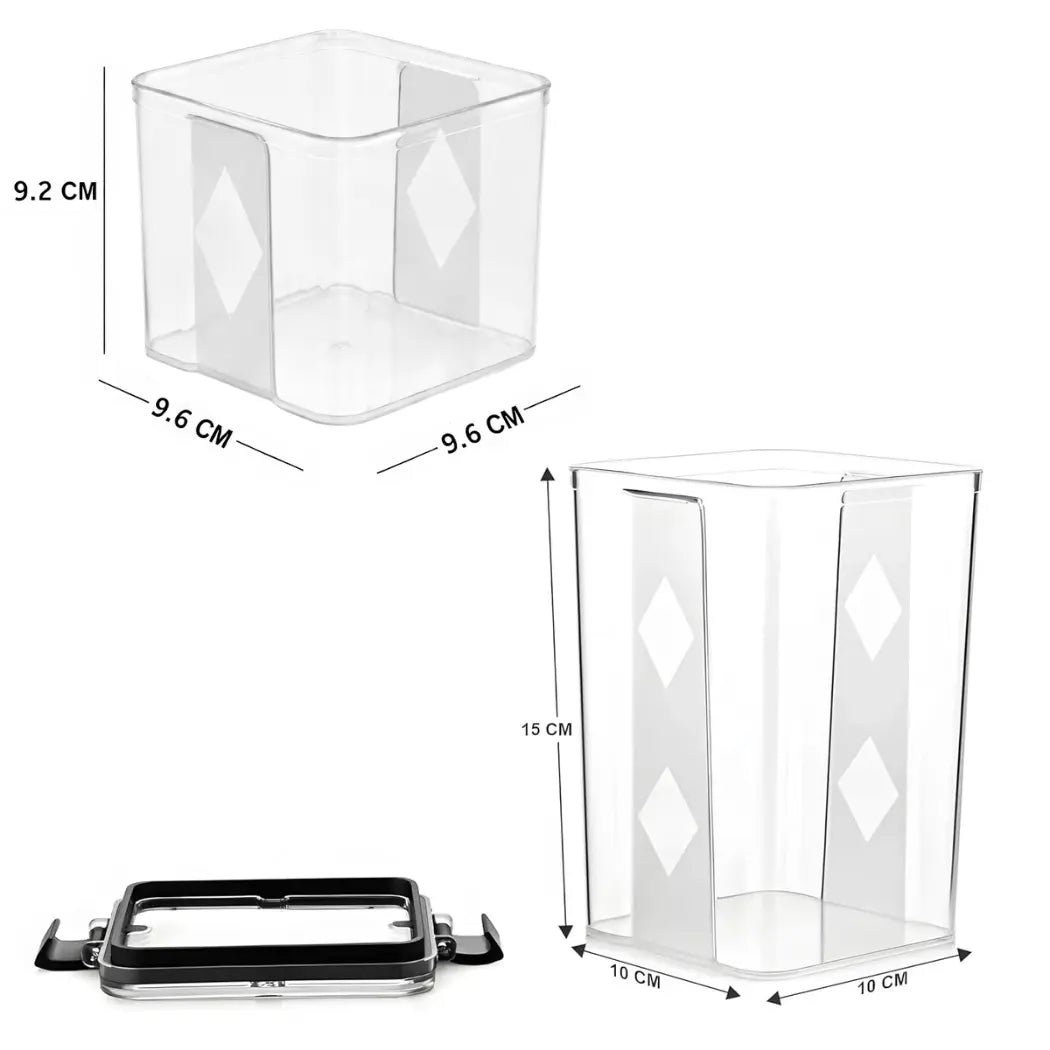 The transparent body allows you to instantly see the contents and quantity inside. No need to open every jar to check what’s stored. The wide mouth opening makes refilling, scooping, and cleaning convenient.